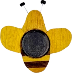 Slatka drvena magnetna pčela razveselit će svaki hladnjak i magnetnu ploču. Ručno izrađena od čak pet vrsta prirodnog drva s prirodno raznobojnom teksturom – bez umjetnog bojanja. Sjajan dekorativni detalj i lijep mali poklon za ljubitelje prirode i životinja.