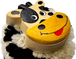 - Veseli dizajn – pahuljast pompon i nasmiješeno lice kravice za dobro raspoloženje.