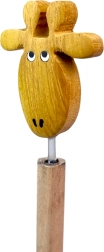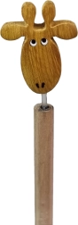 Drvena olovka s glavom žirafe idealna je za ljubitelje prirode i životinja. Svaka je olovka jedinstvena zahvaljujući kombinaciji do pet različitih vrsta drva: žuti kruhovac raznolisni, svjetlosmeđi tamarind manilski, tamnosmeđa kasija obična, ružičasta aniba i bijela gmelina arborea. Proizvod nije bojan, već samo ručno doslikan, što čuva prirodnu ljepotu drveta.