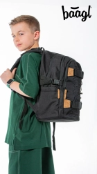 BAAGL Skate Darkness promišljen je školski ruksak za svakodnevno nošenje u školu, na aktivnosti i gradske izlete. Zahvaljujući trima odvojenim pretincima s unutarnjim organizatorom i podstavljenom džepu sigurno ćete pospremiti udžbenike, bilježnice i 15" prijenosno računalo ili tablet. Bočni čvrsti džepovi idealni su za bocu s pićem, a prednji remeni lako će držati skateboard.