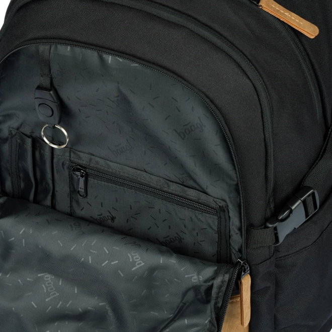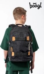 Školski set Baagl 3 SET Skate Darkness osmišljen je za maksimalnu udobnost, organizaciju i sigurnost. Ergonomski oblikovana leđa, potpuno podesivi rameni, prsni i bočni kompresijski remeni osiguravaju savršeno prilagođavanje stasu. Ruksak ima tri zasebne komore s organizatorom, podstavljeni džep za 15" prijenosno računalo ili tablet te bočne džepove za bocu.