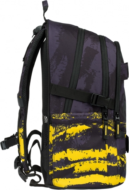 Ruksak je iznimno lagan (850 g), izrađen od čvrstog vodootpornog i recikliranog materijala te dopunjen reflektirajućim elementima za bolju vidljivost. Oduševit će i YKK patentni zatvarači, bočni džepovi za bocu i dvije prednje trake za pričvršćivanje skateboarda. Pernica i vrećica usklađene su dizajnom i kvalitetom – pernica ima unutarnji džep na patent i mjesto za raspored, a vrećica se lako nosi na leđima zahvaljujući čvrstim špagama.