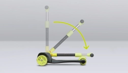 Spremna za vožnju - romobil ne zahtijeva montažu, nakon vađenja iz pakiranja dijete ga može odmah koristiti. Moguće je sklopiti upravljačko postolje i koristiti ga kao ručku za prenošenje.
