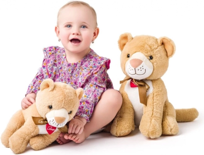 Slatki plišani lav Babu visine 32 cm idealan je mazilac za bebe i stariju djecu. Ima iznimno mekano krzno, različite teksture na šapicama i uškama za razvoj osjetilnih doživljaja te elegantnu mašnu sa srdašcem u koju će se djeca zaljubiti na prvo zagrljaj. Prikladno od 0+ i jednostavno za održavanje pranjem na ruke na 30 °C.