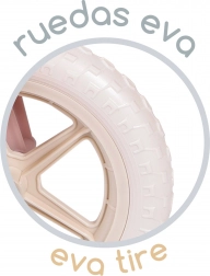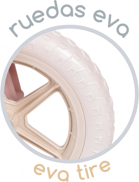 Praktične značajke za udobnost i sigurnost: bezzračne EVA gume ne mogu se probušiti i ne zahtijevaju održavanje, ergonomično oblikovano sjedalo raste s djetetom, a gumirani rukohvati štite male ruke. Stabilnost upotpunjuju čvrst okvir i blatobrani za čišću vožnju.