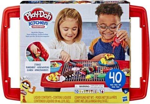 Veliki roštilj set PLAY-DOH donosi djeci od 3 godine mnogo mogućnosti za igru “kod roštilja” i oslobađanje mašte. Izrađujte omiljene poslastice od sočnih burgera do šarenog povrća, ukrašavajte “kečapom” i poslužujte na tanjurićima – sve od mekog, višekratnog plastelina.