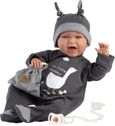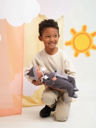 Ova simpatična lutka New Born savršena je za djecu koja žele doživjeti pravi osjećaj brige za bebu. Lutka ima mekano platneno tijelo koje daje osjećaj prave bliskosti. Ruke i noge pričvršćene su zglobovima, što omogućava lako postavljanje i sjedenje. Dio paketa je duda koja služi kao dodatak i odlično se uklapa u svaku igru.