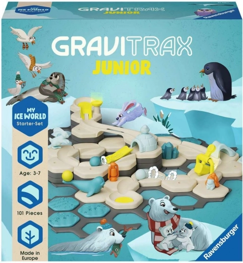 Početni set GraviTrax Junior Ledeni svijet idealan je prvi korak u interaktivni svijet staza za kuglice za najmlađe. Djeca lako mogu izgraditi vlastito ledeno kraljevstvo koje mogu po želji ukrašavati i proširivati. Zahvaljujući pametnim akcijskim elementima, poput Ljuljačke i Čekića, svaka vožnja kuglice je drugačija i puna iznenađenja.