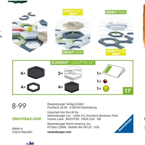 Set GraviTrax Junior adapter idealan je most između razigranog svijeta GRAVITRAX JUNIOR i naprednijih setova GRAVITRAX. Zahvaljujući njemu lako povezujete dijelove oba sustava i stvarate dulje, raznolikije i zabavnije staze s kuglicama.