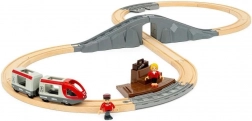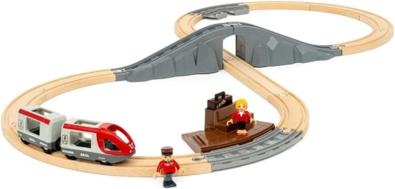 Ovaj set razvija finu motoriku, koordinaciju oko–ruka i maštu. Djeca mogu posjesti strojovođu na čelo vlaka, pustiti putnika da čeka na peronu i krenuti na put po legendarnim BRIO drvenim tračnicama.