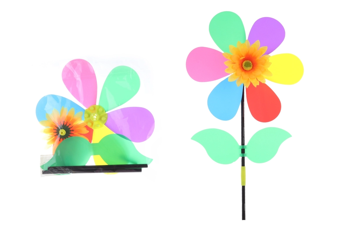 Vjetrenjak u obliku cvijeta lijepa je i funkcionalna dekoracija za vanjsku i unutarnju upotrebu. Okretni latici zavrte se pri svakom dašku vjetra i stvaraju privlačan prizor. Plastična štapna drška omogućuje lako postavljanje u gredicu, travnjak ili lončanicu.