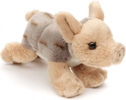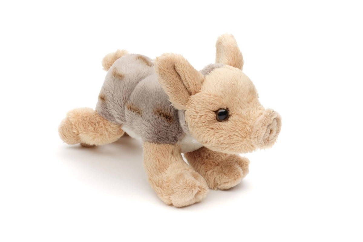 Ovaj mali plišani praščić oduševit će svojom mekanom dlakom u bežasto‑sivom izdanju, slatkim ušima i vezenim detaljima. Zahvaljujući kompaktnim dimenzijama stane u dječju ručicu, kolica i ruksak te je sjajan kao mazilac za spavanje i prijatelj za putovanja.