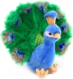 Preslatka plišana paunica veličine 25 cm razveselit će djecu i odrasle svojim živopisnim izgledom i mekanoćom. Idealna je za maženje, igru i ukrašavanje dječje sobe. Zahvaljujući nježnom materijalu pogodna je već od 0+, a njezin prekrasan lepezasti rep potiče maštu i osjetilno opažanje.