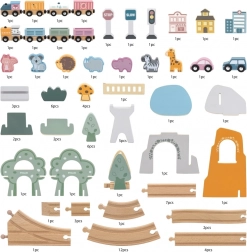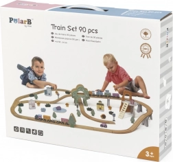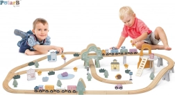 Otkrijte svijet mašte s drvenom željezničkom prugom POLARB. Set sadrži 90 pomno izrađenih dijelova: ravne i zavojite tračnice, uzvišenja i most, vlakić s vagonima, prometne znakove, kućice, vozila, životinjice, stabla i stijene. Zahvaljujući jednostavnom spajanju može se složiti bezbroj pruga i scena koje djeca stalno mijenjaju i nadograđuju.