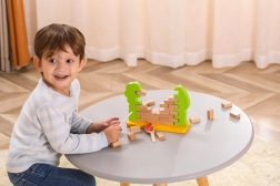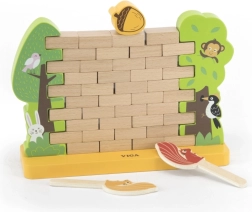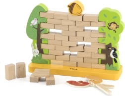 Ova drvena logička igra u obliku zida donosi djeci sate kreativne zabave i učenja. Robusni drveni dijelovi ugodno leže u ruci i idealni su za razvoj fine motorike i strpljenja. Igrači postupno slažu zid od “cigli”, a zatim ih jednu po jednu pažljivo izvlače tako da se konstrukcija ne sruši.
