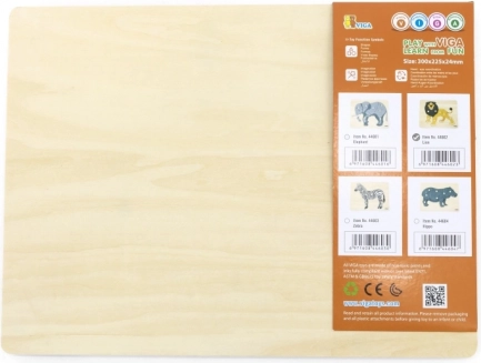 Ploča od kvalitetnog drva veličine cca 30 × 22,5 cm izdržljiva je i stabilna, prikladna za svakodnevnu igru. Igračka je namijenjena djeci od 18 mjeseci i potiče uočavanje oblika, upoznavanje životinja i rješavanje problema.