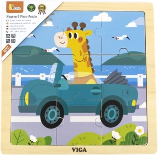 Ove kvalitetne drvene puzzle s simpatičnom žirafom u autu dizajnirane su za male dječje ruke. Zahvaljujući 9 velikim i lako prihvatljivim dijelovima, djeca vježbaju koordinaciju oko–ruka i uče slagati jednostavnu sliku u čvrstom drvenom okviru.