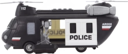 Policijski helikopter sa svjetlosnim i zvučnim funkcijama nudi sjajnu zabavu za djecu. Opremljen je namotavajućom kukom i rotirajućim rotorom, a radi na baterije.