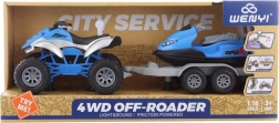 Ovaj detaljno izrađen četverocikl s prikolicom i skuterom donosi djeci puno akcije i maštovite igre. Zahvaljujući svjetlosnim i zvučnim efektima igra je još realističnija i zanimljivija. Dio seta je i prikolica za prijevoz skutera, pa djeca mogu stvarati vlastite priče i pustolovine.