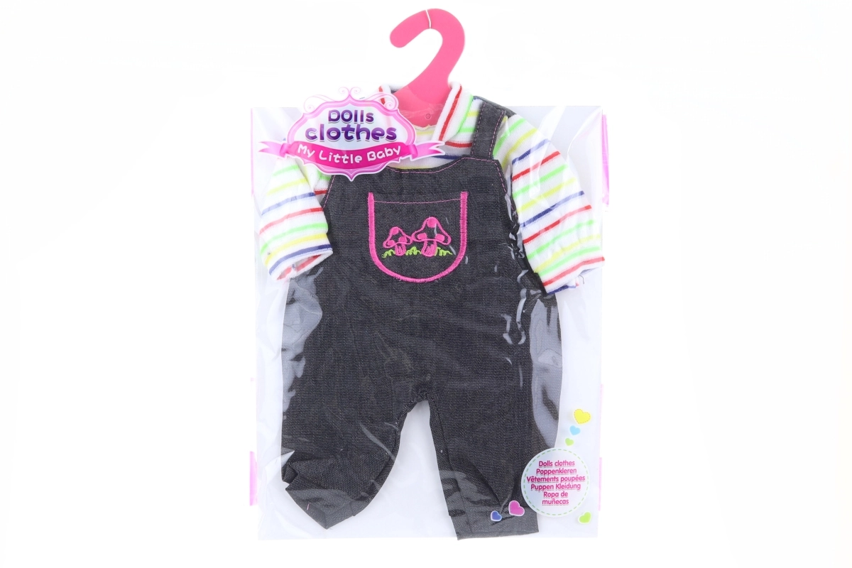 Odjeća za lutku veličine cca 40–45 cm. Dimenzije odjeće cca 23 × 31 cm. Dimenzije pakiranja cca 25 × 32 × 1 cm. Materijal: poliester. Dob: 3+.