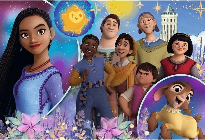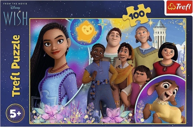 Šarene dječje puzzle s motivom filma Disney Wish brenda TREFL. Sadrže 100 dijelova, preporučeno od 5 godina. Nakon slaganja nastaje slika dimenzija 41 × 27,5 cm. Proizvedeno od kvalitetnih materijala s kalandriranim papirom za lakše slaganje, proizvedeno u Poljskoj od ekoloških materijala.