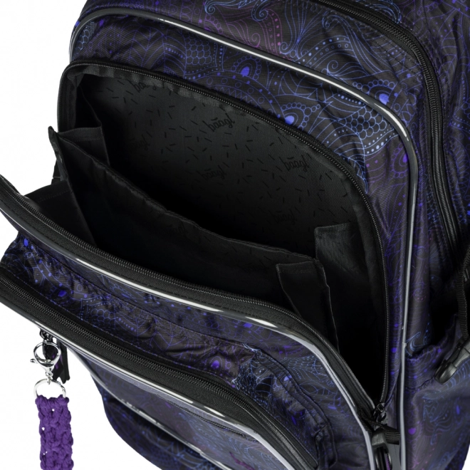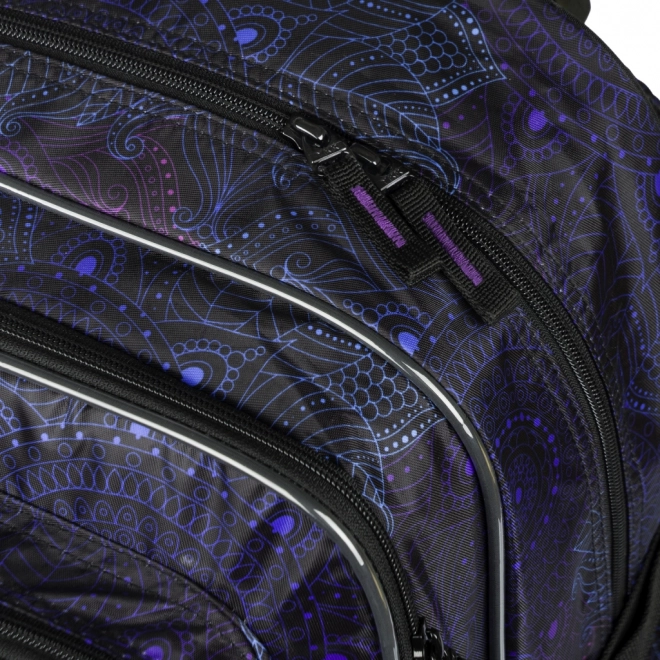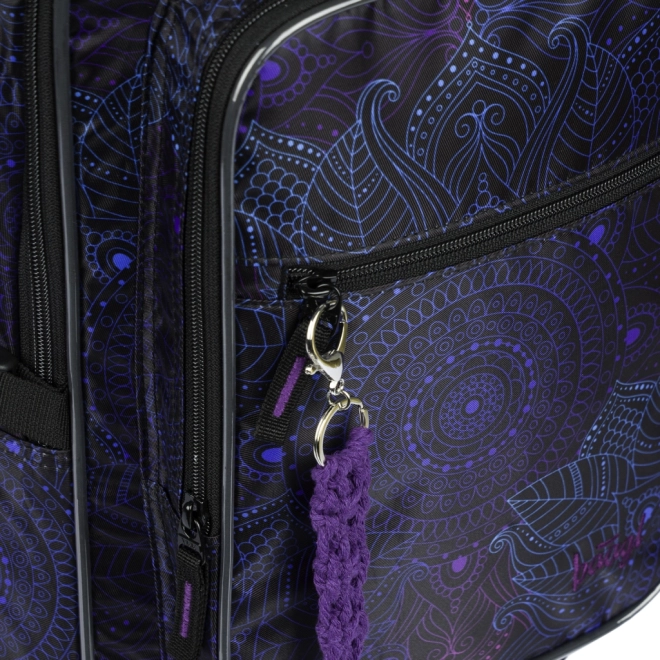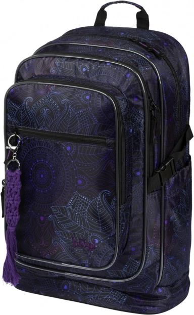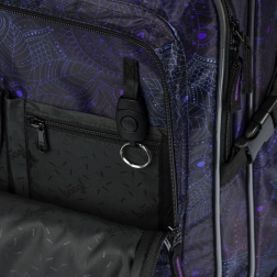 Dizajn s elegantnim ljubičasto-crnim motivima upotpunjuje trendovski privjesak. Torba nudi obujam od 29 l, nosivost 7 kg te je testirana i certificirana u akreditiranom ispitnom laboratoriju, pa zadovoljava zahtjeve za kvalitetu i sigurnost.