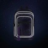 Tri odvojena pretinca s unutarnjim organizatorom omogućuju pregledno spremanje školskog pribora i ravnomjernu raspodjelu težine. Unutarnji podstavljeni džep sigurno prima prijenosno računalo ili tablet do 15". Prednji pretinac s praktičnim organizatorom i odvojivim karabinom za ključeve povećava praktičnost u svakodnevnoj upotrebi. Ne nedostaju ni ojačani skriveni džep na dnu, bočni džepovi za bocu te bogati reflektirajući elementi za bolju vidljivost.