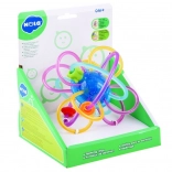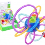 Zahvaljujući savitljivim elementima dijete će igračku bez problema držati u ruci. Glatka i mekana površina savitljivih virova će odlično masirati dječje desni. Šarene kuglice smještene na savitljivim virovima lako klize kroz igračku.