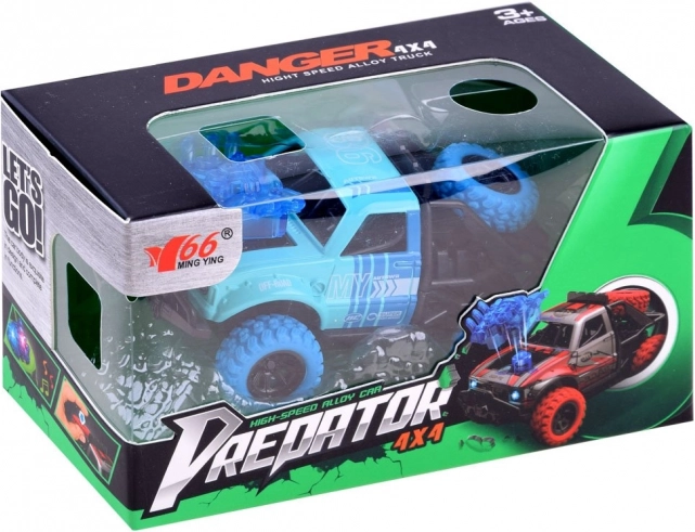 Zabavni metalni autić 4x4 Predator donosi akcijsku vožnju s opružnim pull-back pogonom, svjetlosnim efektima i realističnim zvukovima motora, sudara i alarma. Zahvaljujući izdržljivoj konstrukciji s metalnom karoserijom, gumenim gumama i čvrstim podvozjem, lako svladava i divlje kaskaderske trikove.
