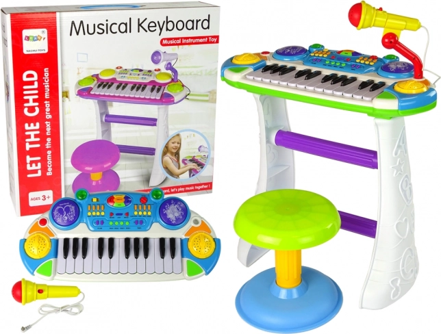 Ova multifunkcionalna dječja klavijatura idealan je izbor za male glazbenike od 3 godine. Zahvaljujući bogatoj opremi i jednostavnom upravljanju donosi puno radosti te istodobno potiče razvoj glazbenog sluha i ritma. Može se koristiti na priloženom stalku sa stolicom ili samostalno položena na stol.