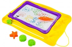 Otkrijte zabavnu i praktičnu igračku za male umjetnike – magnetičnu ploču za crtanje u morskim bojama sa šarenom pozadinom podijeljenom na 8 sekcija. Zahvaljujući magičnom brisanju pomoću klizača, djeca mogu crtati iznova i iznova bez nereda. U kompletu su 3 figuralna žiga (srce, zvjezdica, krug) i ergonomski stylus u obliku školjke za udobno držanje te razvoj kreativnosti i fine motorike.