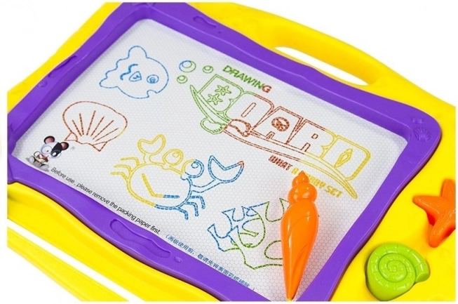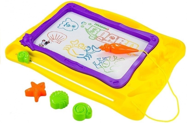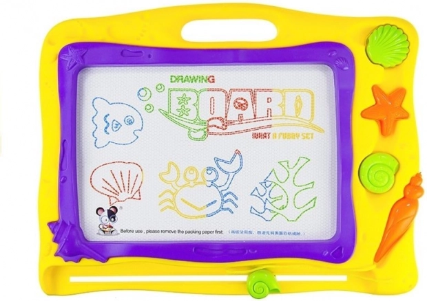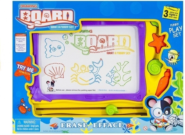 Šarena pozadina podijeljena na 8 dijelova daje svakom uratku živost i potiče dječju maštu. Morski dizajn sa školjkama i zvjezdačama razveselit će male ljubitelje oceana. Kvalitetna izrada osigurava dug vijek trajanja i sigurno korištenje – crtajte isključivo priloženom magnetičnom olovkom.