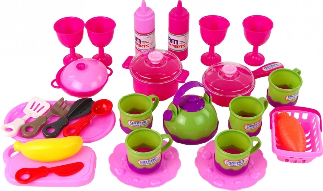 Ovaj ružičasti kuhinjski set savršen je dodatak za male pomagačice u kuhinji. Značajno razvija maštu i manuelne vještine djece, dok pruža radost kroz sate zabave. Stilizirani dizajn i bombonska ružičasta boja privlače svaku malu kuharicu za kreativnu igru.