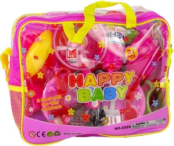 Dimenzije pakiranja: 26 cm x 20 cm x 8 cm. Cijeli set izrađen je od ekološki prihvatljive i sigurnog plastike za djecu, koja vjerno imitira pravo posuđe i kuhinjski pribor.