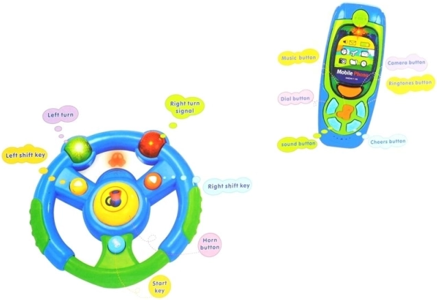 Naš interaktivni set za djecu uključuje volan, telefon i ključeve. Svaki dio je dizajniran tako da se lako uklapa u male dječje ručice i pruža zabavnu i edukativnu igru.