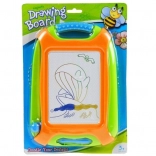 Predstavljamo vam magnetnu ploču za crtanje opremljenu kvalitetnim velikim zaslonom podijeljenim u četiri obojene sekcije: zelenu, žutu, plavu i smeđu. Ova inovacija omogućuje stvaranje originalnih, višebojnih crteža. Načelo rada je jednostavno – ispod površine zaslona nalaze se željezne opiljke koje se posebnim magnetnim olovkom oblikuju u oblike koje dijete nacrta.