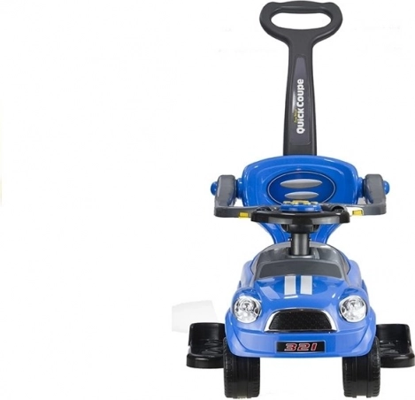 Guralica u sportskom, trkaćem stilu spaja radost vožnje sa sigurnošću i udobnošću. Lagana i izdržljiva plastična konstrukcija omogućuje djeci lako odgurivanje, dok vodilica daje roditelju kontrolu nad smjerom vožnje. Sigurnosne ograde oko sjedala, oslonac za noge i visoki naslon podupiru pravilno sjedenje i stabilnost.