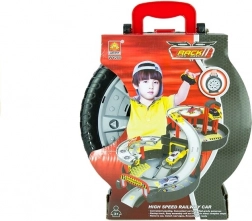 Kompaktno dvoetažno parkiralište za djecu u praktičnom koferu u obliku kotača donosi sate zabave kod kuće i na putu. U kompletu su 2 autića i helikopter, višerazinsko parkiranje, rampe i heliodrom. Igračka je lako prenosiva, brzo se sklapa u kofer i potiče kreativni i motorički razvoj djece. Certifikacija CE, norma EN71, prikladno od 3 godine.
