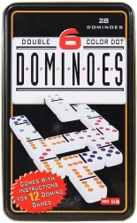 Otkrijte bezvremensku društvenu igru koju savladavaju i djeca i odrasli. Domino sa šarenim točkicama idealno je za obiteljske večeri, putovanja i slobodne trenutke. Robusne pločice u praktičnoj metalnoj kutiji lako se spremaju i prenose, pa je zabava uvijek pri ruci.