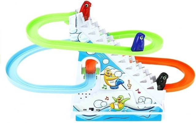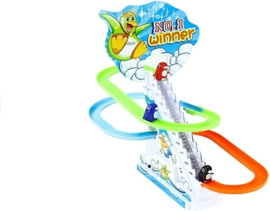 Ovaj set s pokretnim stubištem nudi interaktivnu igru u kojoj pingvini klize niz staze dok svira ritmična melodija. Sigurna igračka dizajnirana je za najmlađu djecu koja vole šarene i živopisne zabave.