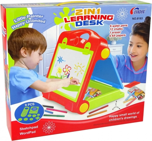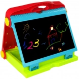 Sklopiva dječja ploča 2u1 idealan je alat za razvoj umjetničkog senzibiliteta i kreativnosti kod djece. Mogu je koristiti i dvoje djece istovremeno, što potiče timski rad i dijeljenje ideja. Ploča dolazi s praktičnim setom dodataka.