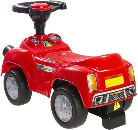 Volan je opremljen zabavnom zviždaljkom, što guralo čini još privlačnijom igračkom.