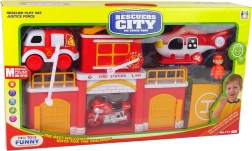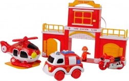Upoznajte vatrogasnu postaju sa zvukom, savršen izbor za male heroje. Ova igračka ne samo da razvija motoričke sposobnosti, već i koordinaciju te vještinu hvata. Vatrogasna postaja je potpuno opremljena s velikim vratima kroz koja vozila mogu izlaziti, sve u crvenoj i žutoj boji. Vatrogasno vozilo i postaja imaju zvučne efekte sirene, što dodaje realizmu igre.