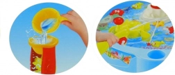 Tekuća voda pokreće žuti mlin i stvara mali slap. Djeca otkrivaju principe uzroka i posljedice te vježbaju finu motoriku pri ulijevanju vode.