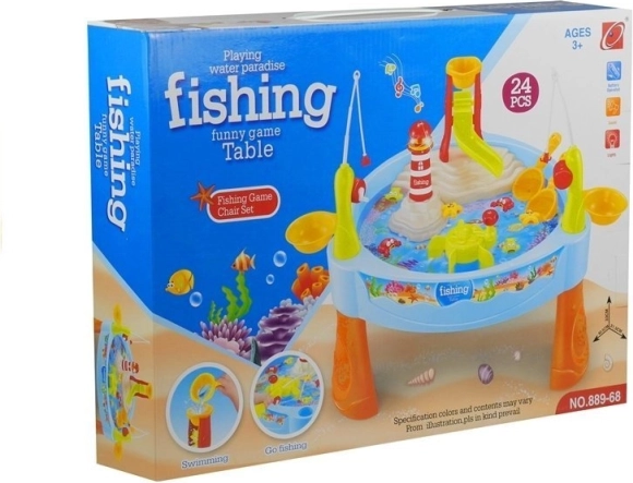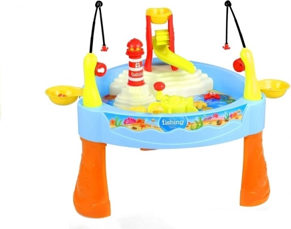 Otkrijte svijet vodenih igrarija, gdje djeca uz pomoć magnetskih štapova love ribice, rakove i druge morske životinje. Pritiskom na svjetionik pale se svjetla i pokreće vesela melodija, a tok vode okreće vodeni mlin i stvara slap. Igra je intuitivna i prikladna i za mlađu djecu – može se igrati samostalno ili se natjecati s prijateljima ili roditeljima.