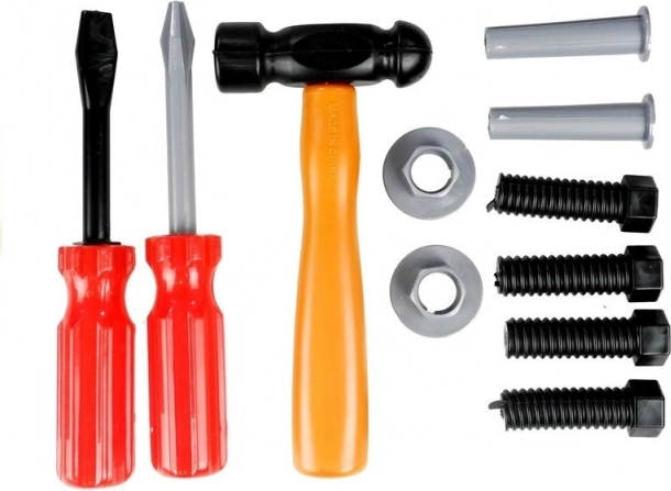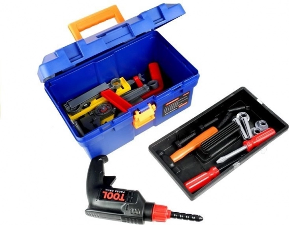 Ovaj komplet za male majstore sadrži sve što je potrebno za popravke i igru majstora. Lagani i izdržljivi kofer s pretincem drži sve dijelove pregledno na okupu, dok realistični plastični alati djecu sigurno upoznaju sa svijetom alata.