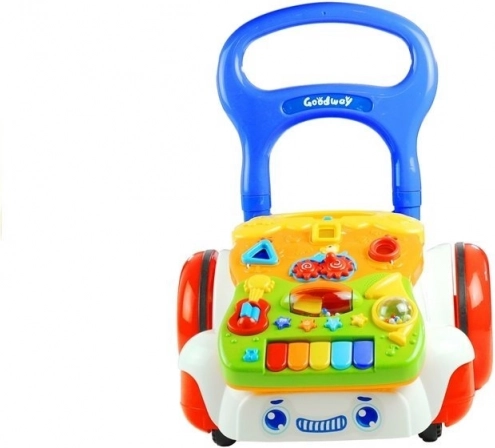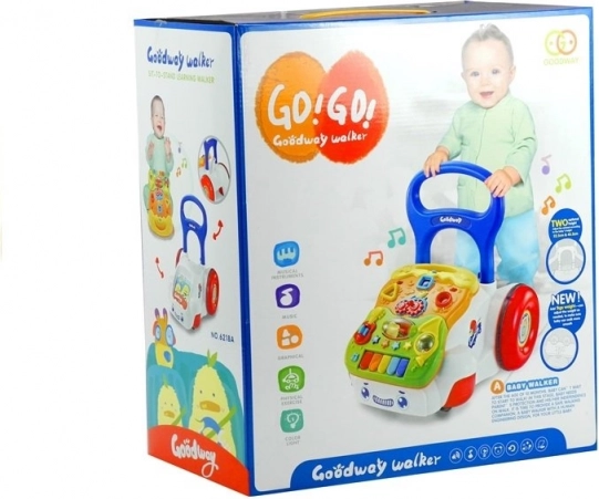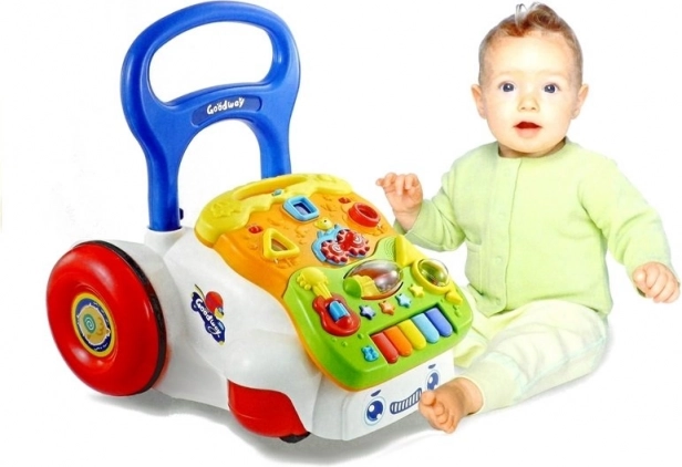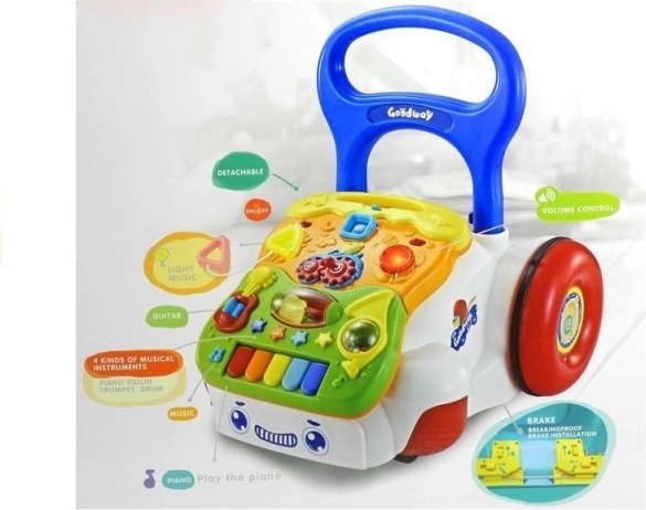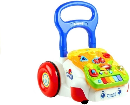 Ova multifunkcionalna hodalka dizajnirana je za najmlađe kako bi poticala prve korake i samostalnu igru. Prednji se panel jednostavno skida i koristi kao zasebna interaktivna igračka sa svjetlima, zvukovima i glazbom. Donji dio opremljen je kočnicom koja se može uključiti za igru na mjestu.