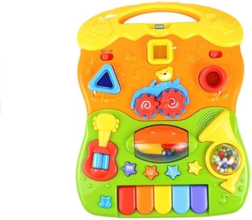 Zvjezdice sa zvukovima instrumenata, mala klavijatura, gitara sa svjetlima i oblici na uzicama razvijaju osjetila, logiku i finu motoriku.