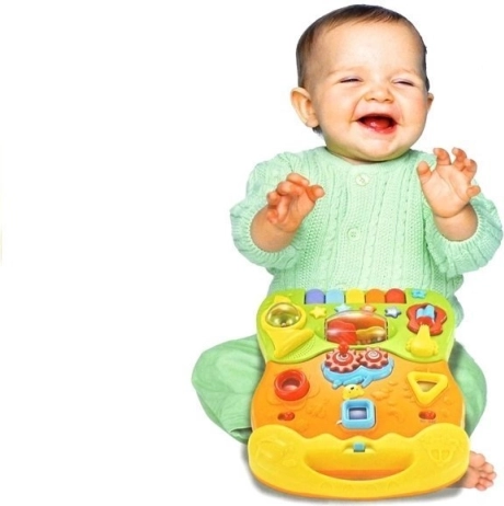 - Svjetlosni efekti, glazbeni i zvučni efekti, malo pianino/klavijatura, gumbi, rotirajuće zvečkice, klizni elementi
