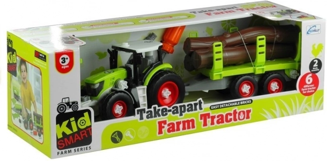 Rastavljivi traktor s prikolicom pomaže razvijati motoričke sposobnosti, kreativnost i samostalnost djece. Zavrtanje i demontaža pojedinih dijelova jačaju logičko razmišljanje i samopouzdanje. Izrađeno od plastike za dugotrajnu izdržljivost igračke. Traktor s prikolicom ima rotacijska parketna kotača koja osiguravaju realističnu vožnju.